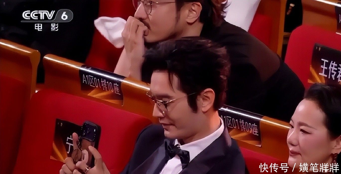 4. 《小小的我》剧组全体成员起立致意,黄晓明专注用手机记录这一时刻,镜头始终对准舞台中央;一贯沉静的王传君微微前倾身体,仿佛不愿错过任何细节。